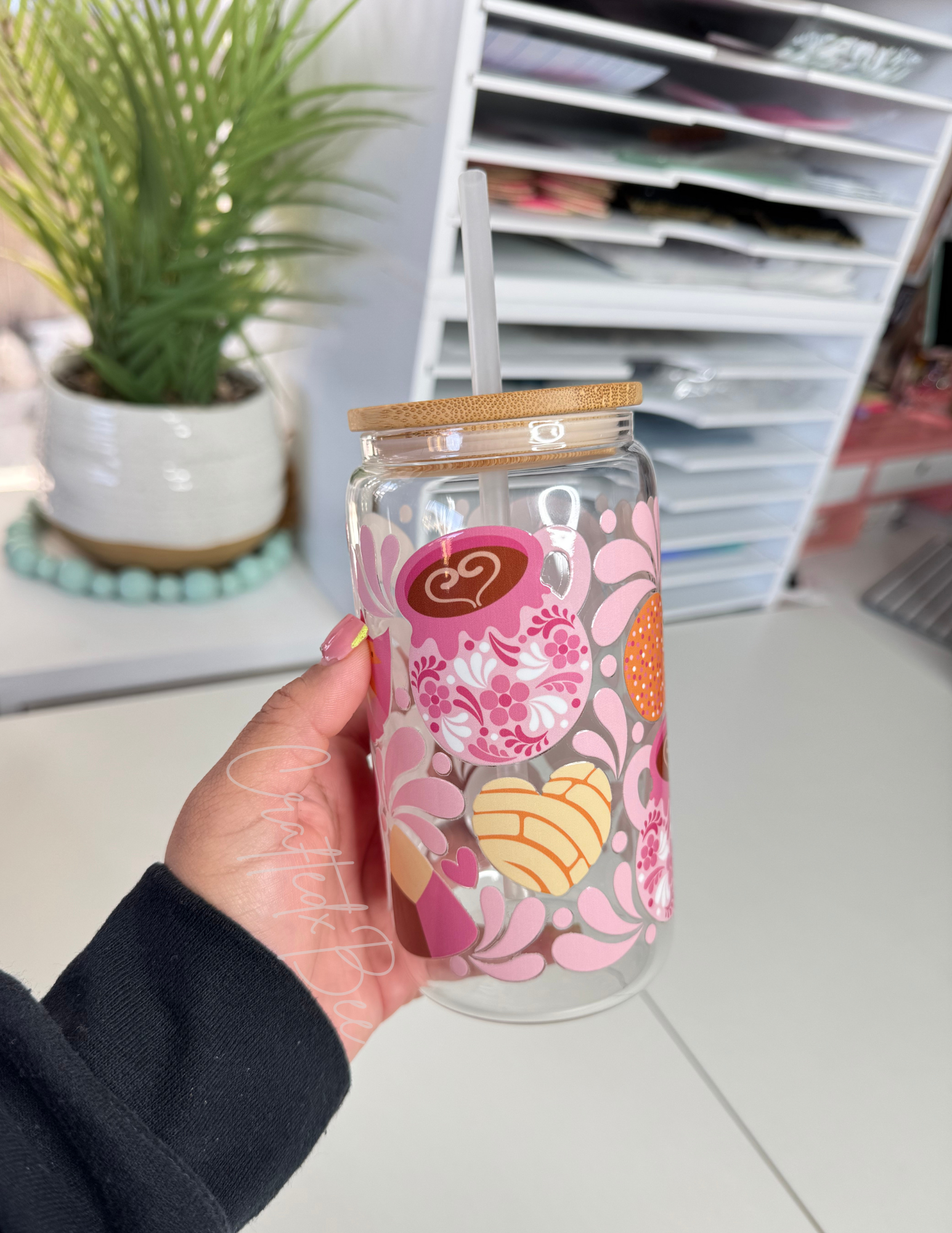 ❥ Each Glass cup comes with a Bamboo lid & plastic straw